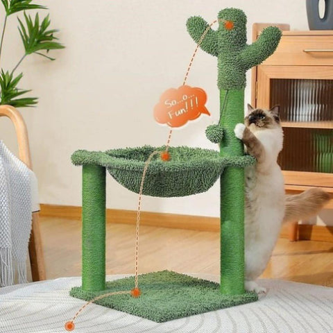The cactus-shaped design of this cat tower brings a playful touch to any home, adding a stylish flair that surpasses most cat toys on the market. The cat tree features full sisal-wrapped posts, effectively preventing your feline friend from damaging furniture, curtains, and more, ultimately saving you money.