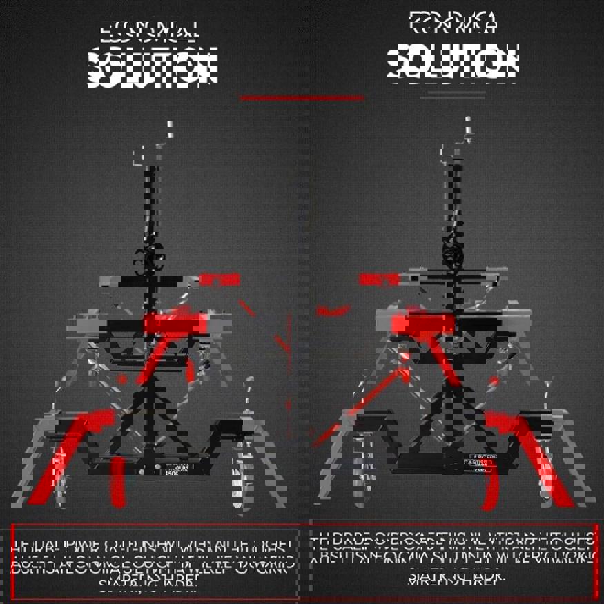 Its heavy duty steel construction and adjustable width makes your work easier and smoother. This rotisserie can fully rotate 360 degrees and saves you time and effort when performing any operation. Easier on your body and less fatigue while working on the vehicle.