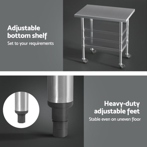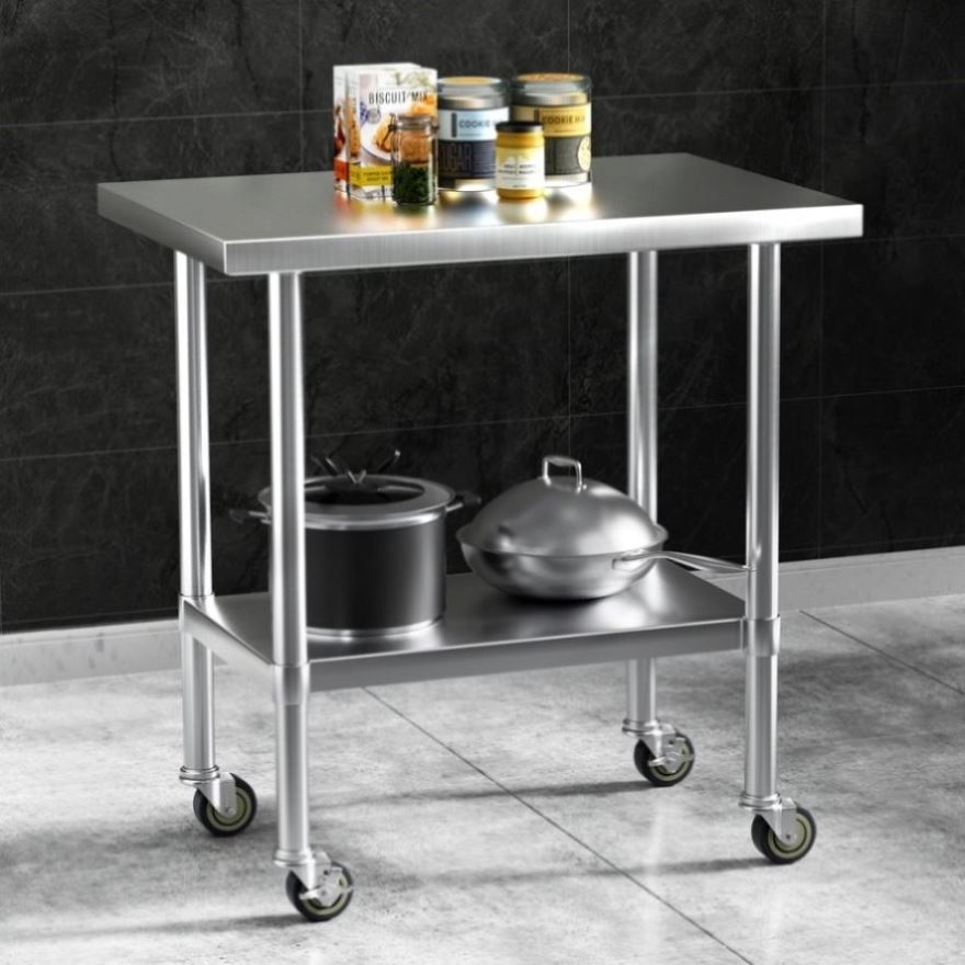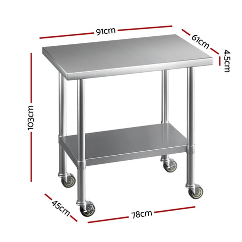 Cefito Stainless Steel Kitchen Benches Work Bench Wheels 91X61CM 430 SSKB-430S-WHEEL-36