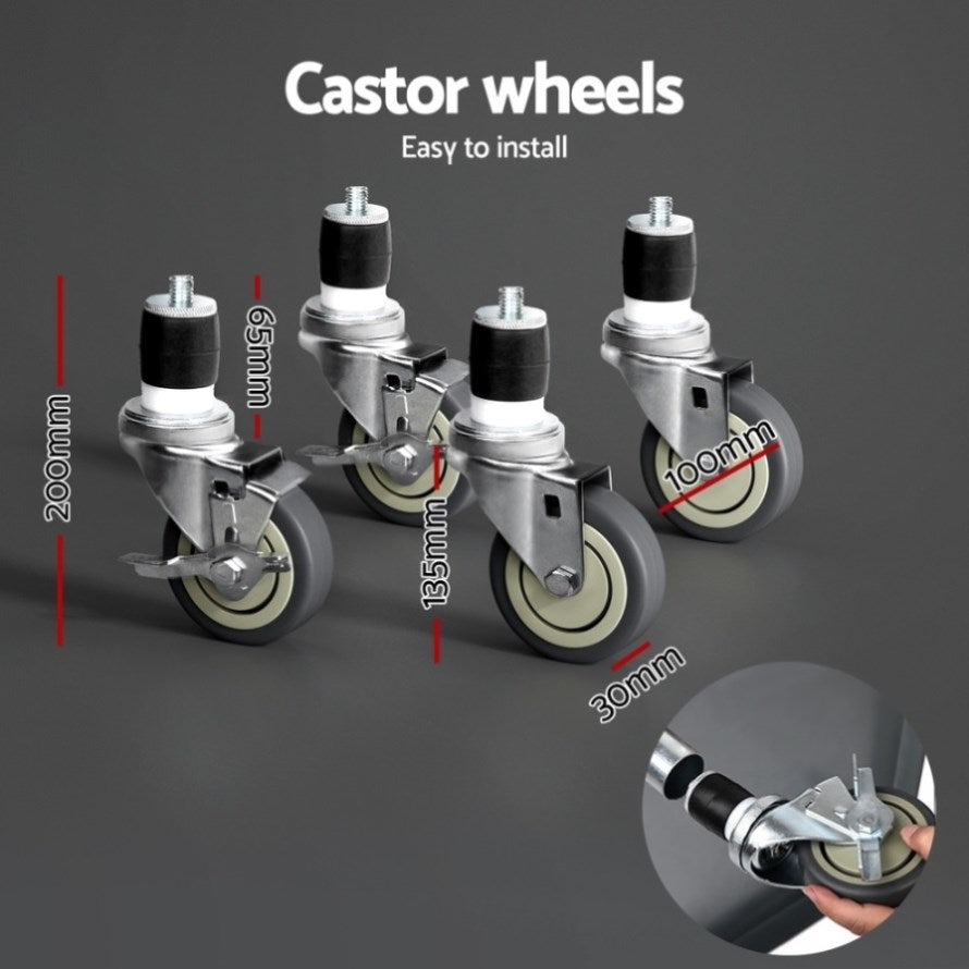 Made of 430 graded stainless steel, you can be assured that it will be a long lasting item in your kitchen. Fitted with lockable castors, stability is no longer an issue. Don't worry of tumbling bench anymore. Can be easily flat-packed for portable and on-site work, it is your first choice at all times.