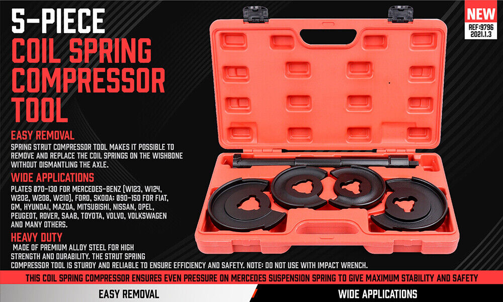 • This coil spring compressor ensures even pressure on Mercedes suspension spring to give maximum stability and safety. Also fits most modern vehicles that use coil springs in multi-link independent suspensions.