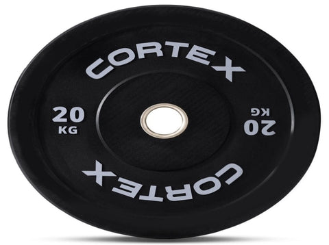 Our CORTEX 20kg Black Series V3 Rubber Olympic Bumper Plates are engineered for serious functional fitness use, Olympic lifting and Cross Fit training. The heavy-duty rubber surface is scratch resistant and designed to withstand high impact lifts. The grooved edges allow for better handling with the steel core offering seamless loading onto the barbell.