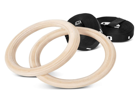 Gym Rings provide workouts beyond free weights or cable weights, with balance based body weight exercises that will work your smaller, stabilising muscles and core. Excellent for building strength and control. Our wooden Gym Rings are carefully crafted to provide a smooth finish, and offers a greater grip than plastic rings.These rings are built to the International Gymnastics Federation (FIG) specifications for competition gym rings so you know you�re getting a quality product.