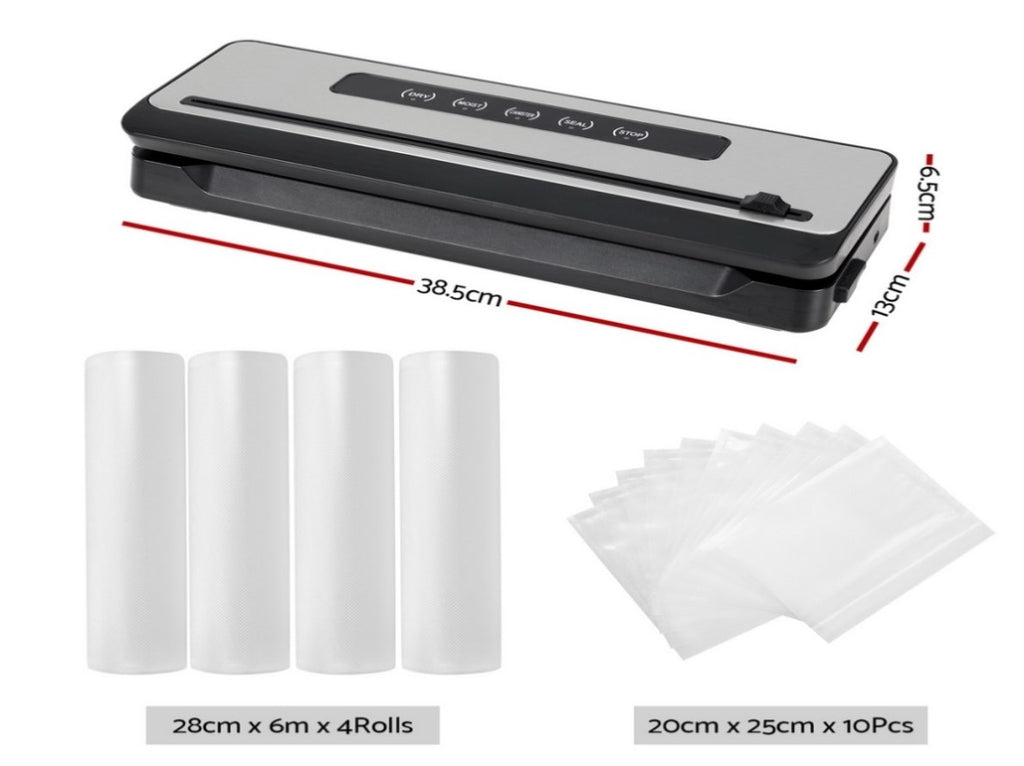 Devanti Food Vacuum Sealer Machine Sealing Cutter 4 Modes Storage Bags 4 Rolls FVS-32-BAG-28X2