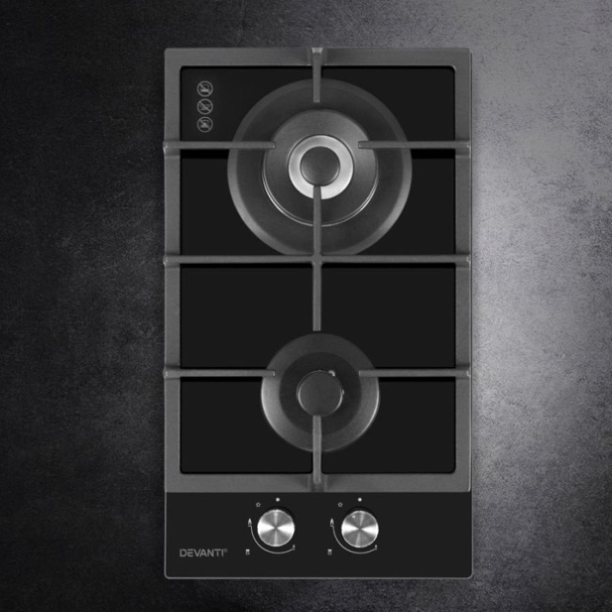 Devanti Gas Cooktop 30cm 2 Burner Black CT-GAS-2B-BK