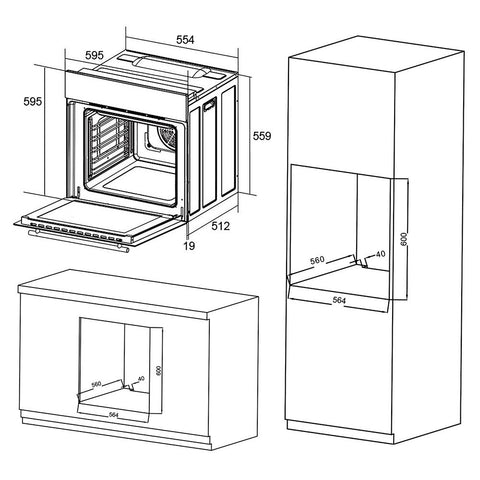 - Built-in Width x Depth x Height: 595 x 531 x 595mm