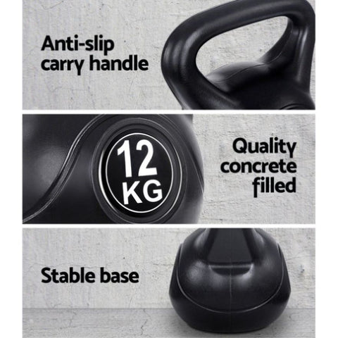 Everfit 12kg Kettlebell Set Weight Lifting Bench Dumbbells Kettle Bell Gym Home FIT-K-KB-12KG-BLACK
