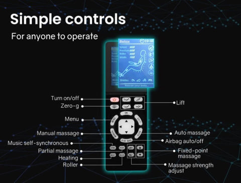 - Massage Functions: Kneading, Relaxation, Shiatsu, Knocking, Tapping