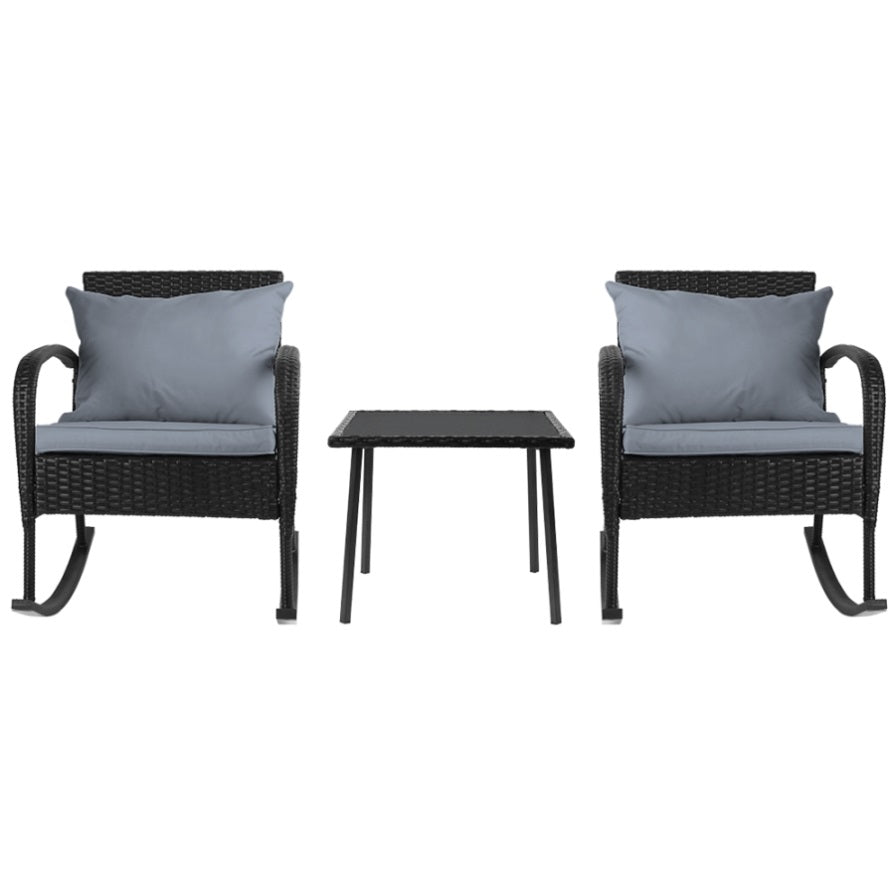 Gardeon 3 Piece Outdoor Chair Rocking Set - Black