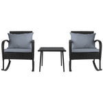 Gardeon 3PC Rocking Chair Table Wicker Outdoor Furniture Patio Bistro Set Black ODF-ROCK-E-SET-BK
