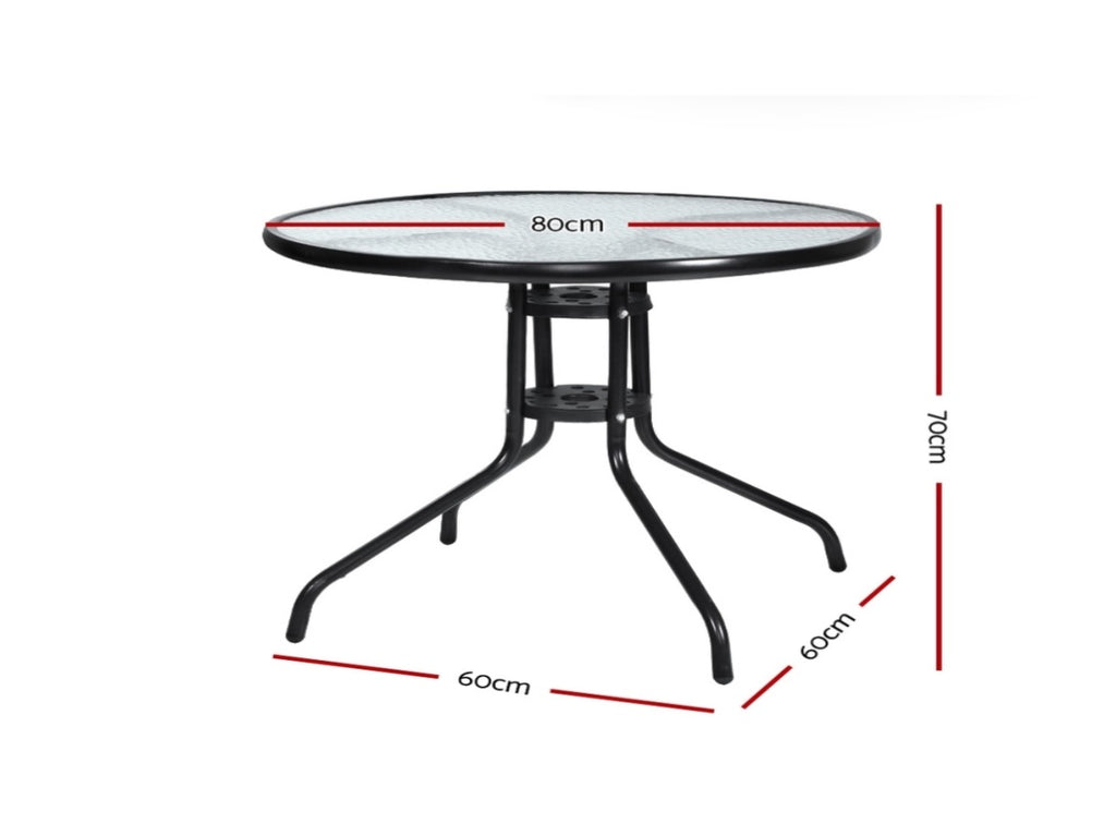 Add a touch of classic elegance to garden, home patio, bistro or café with our Gardeon Bar Table. Stunning in looks and equally as functional, this bar table has plenty going for it. The thick steel frame makes the table durable and the 5mm thick tempered ripple glass does not only look stylish, it is easy to clean. There are also non-slip feet, making the table suitable for use in even the most slippery of situations. Plus, there is a built-in hole about 45mm for your parasol so that now you can relax outdoors for as long as you like during the hot summers without the fear of getting sunburnt.