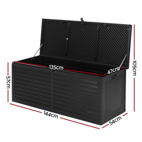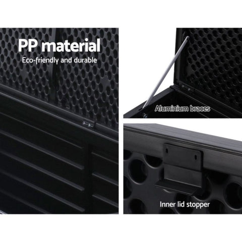 Gardeon Outdoor Storage Box 390L Container Lockable Garden Bench Shed Tools Toy All Black OSB-S390-ABK