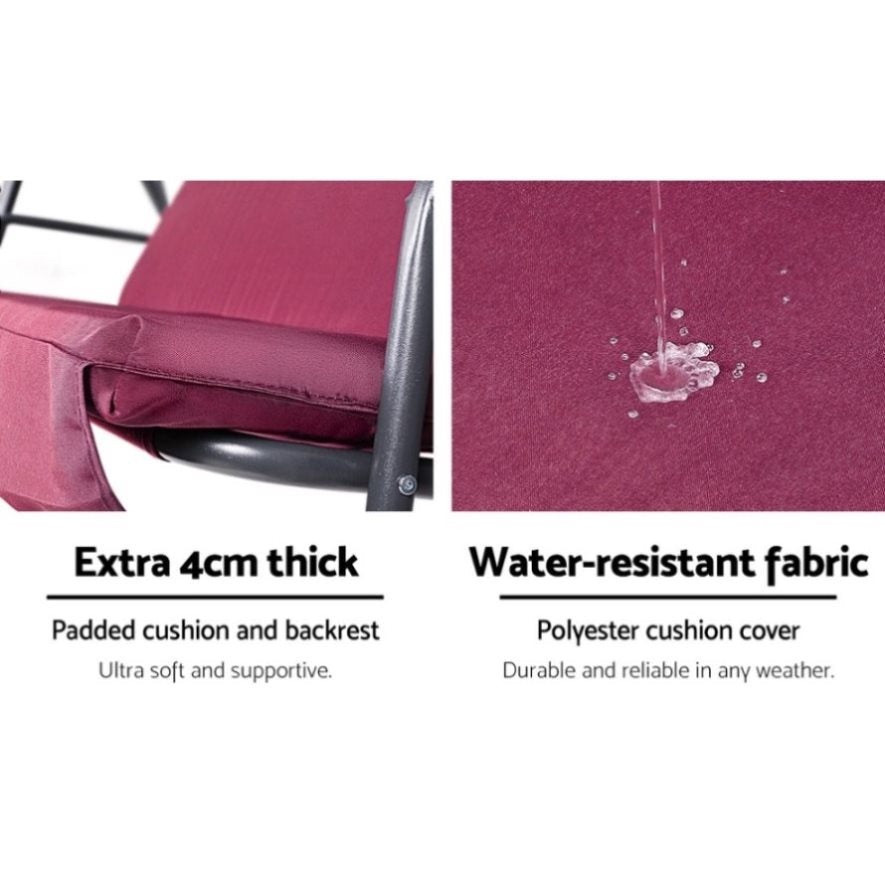 Gardeon Outdoor Swing Chair Garden Bench Furniture Canopy 3 Seater Wine Red GSC-BST-3S-WR