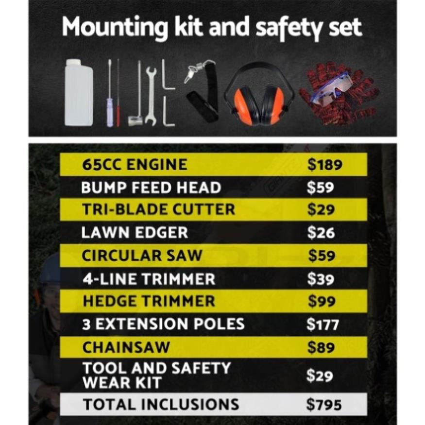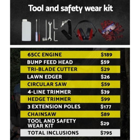The GIANTZ 9-in-1 Pro-series Chainsaw is the answer for people who are looking for doing serious cutting and bring it to the next level. Featuring a powerful 75cc 2-stroke engine with an E-start recoil pull system, the chainsaw trims and cuts every gardening challenge in its path with minimum hassle. Efficient and lightweight in design and equipped with a comfortable D-handle, the chainsaw allows quick-connect coupling for easy change of attachments. In fact, up to seven attachments for every conceivable cutting job. Better still, the chainsaw also comes with three extra thick alloy extension poles which allows you to reach up to 4.3m for those hard-to-get branches. Not least, the cutting equipment also features fine quality construction and cutting-edge technology to ensure the chainsaw remains reliable, durable and sharp consistently.
