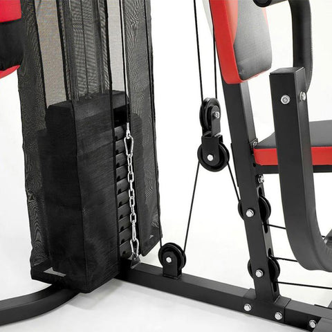 Get your heart pumping with the heavy punching bag, or get a few boxing footwork drills in during speed bag practice. If home weight training is your focus, you're spoilt for choice between the pull down bar, bicep curl cable, chest fly machine, and more. This multi station gym makes it easy to stick to a workout plan at home, so you can get the body you want quicker.