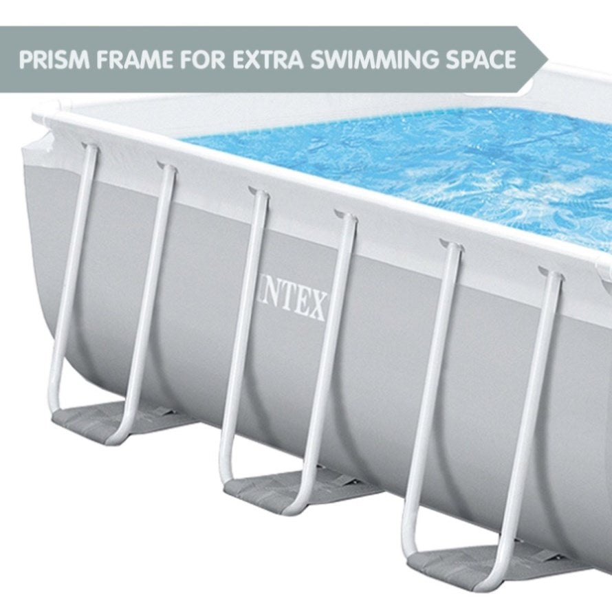 Swim and splash in your own backyard with the Intex Prism Frame 3m x 1.75m Above Ground Swimming Pool. The rectangular frame holds more water than conventional round pools, giving you more space to swim while maximising your outdoor area.