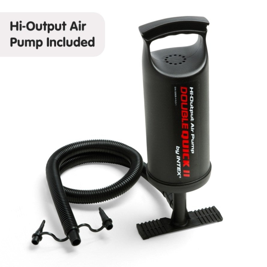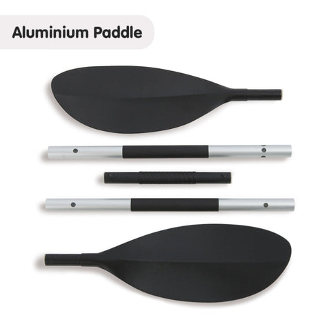 Each two-seater kayak comes with a storage bag, two aluminium paddles and a high-output hand pump for quick inflating and deflating. With its small storage footprint, you can stash it anywhere you want ready for your next getaway.