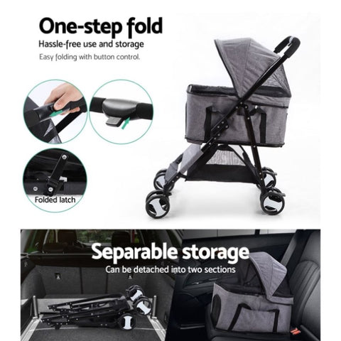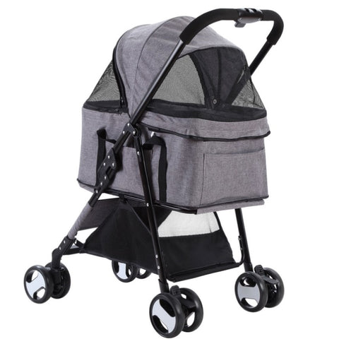 i.Pet Pet Stroller Dog Pram Cat Carrier Travel Large Pushchair Foldable 4 Wheels Grey PET-STROLLER-4WL-M-GR