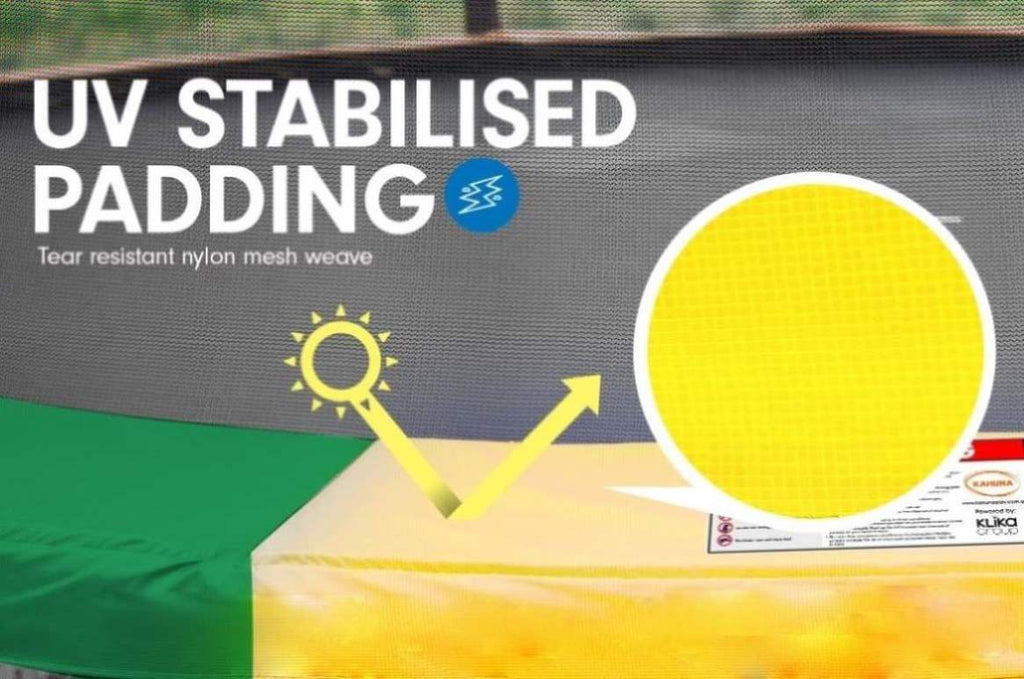 The padding cover of the trampoline is UV stabilised and has embedded nylon mesh, ensuring the padding will last for years under the harsh Australian sun.