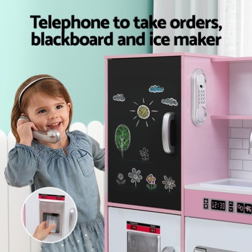 Keezi Kids Wooden Pretend Kitchen Play Set Cooking Toys Pot Ice Cup Oven Blackboard 80CM Pink PLAY-WOOD-BOARD-PK