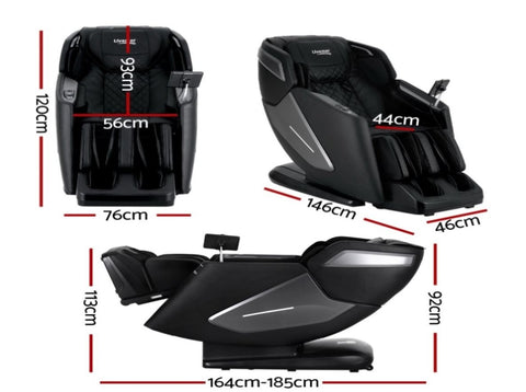 Indulge in ultimate relaxation with the Livermor Electrical Massage Chair, featuring advanced 4D back rollers and 3D buttock rollers for a luxurious massage experience. Its 135cm SL-track design and automatic zero gravity recline reduce spine pressure, while 12 auto full-body massage programs target 9 massage spots from head to feet. Enjoy adjustable roller and airbag intensity levels, heated therapy for the waist and calf, and integrated 3D Bluetooth speakers for immersive relaxation. Control the chair effortlessly with the 7'' LCD touch screen, and rest assured with a 3-year warranty.