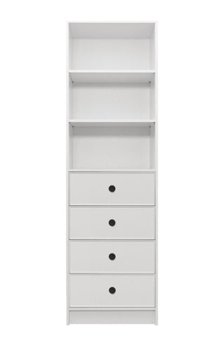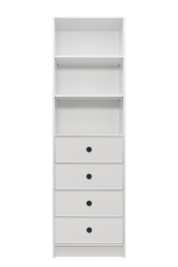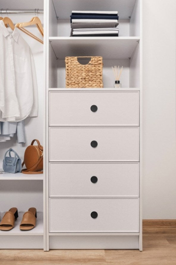 MALMO 3 SHELF 4 DRAWER WALK IN WARDROBE - WHITE - SLIM - ROUND BLACK V164-ECW4TB06B