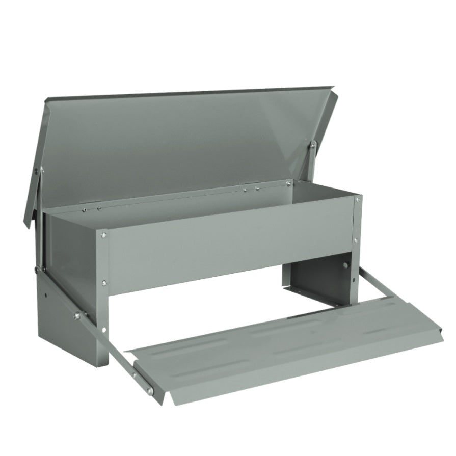 Made from high-quality galvanized iron. A special rust-proof galvanized coating is provided on the entire body to provide active resistance towards the water. Effectively keeps all the food inside clean and fresh. A solid and durable construction helps withstand long term and regular use. Equipped with very large-sized container to hold up to 12.5L of feed. To access the food container a minimum of 500g weight is required. Very easy to assemble with simple instructions. Economic and very low on maintenance.