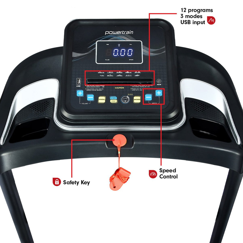 Powertrain MX1 foldable treadmill is manufactured with keeping home fitness regime in mind to make indoor workouts much easier and effective with easy to use design.