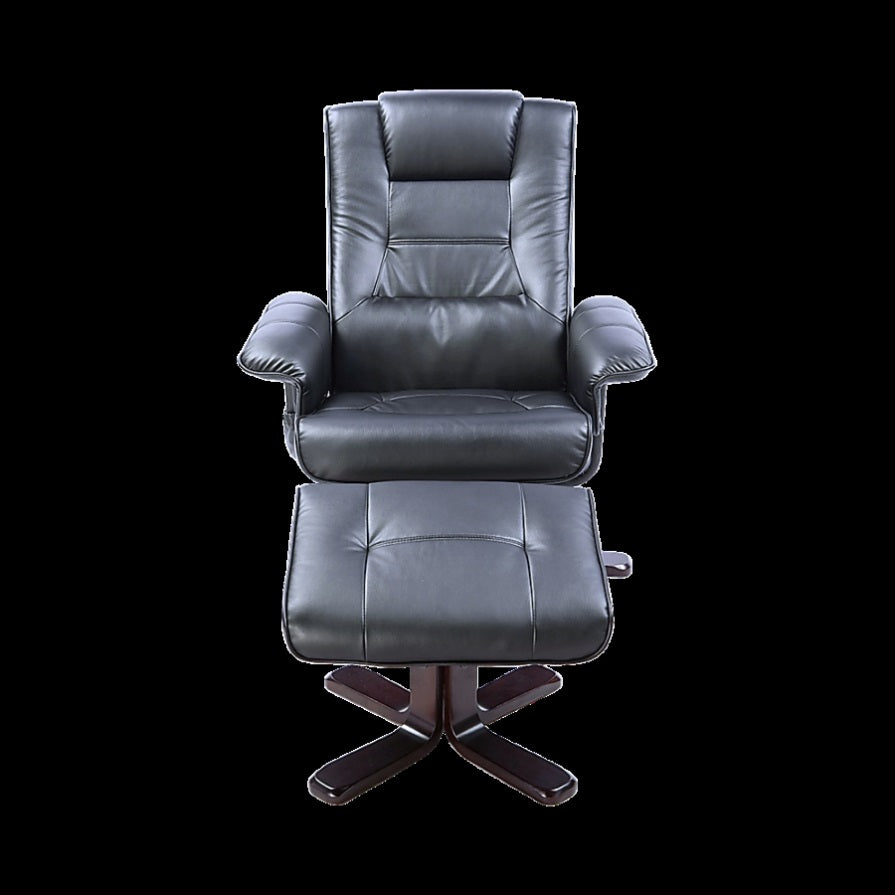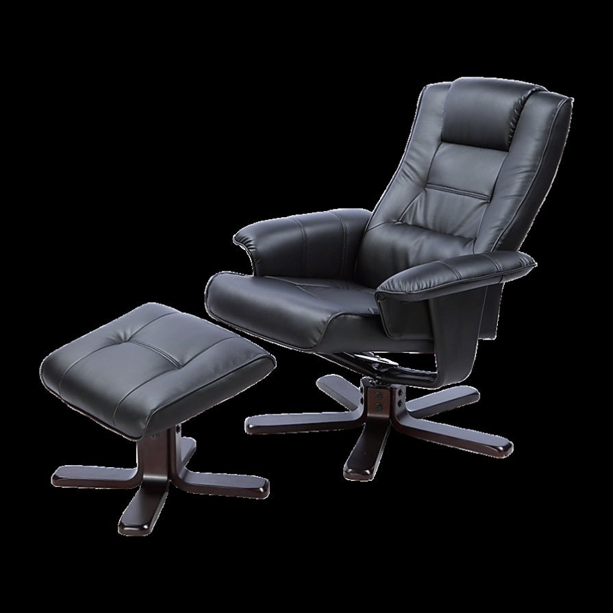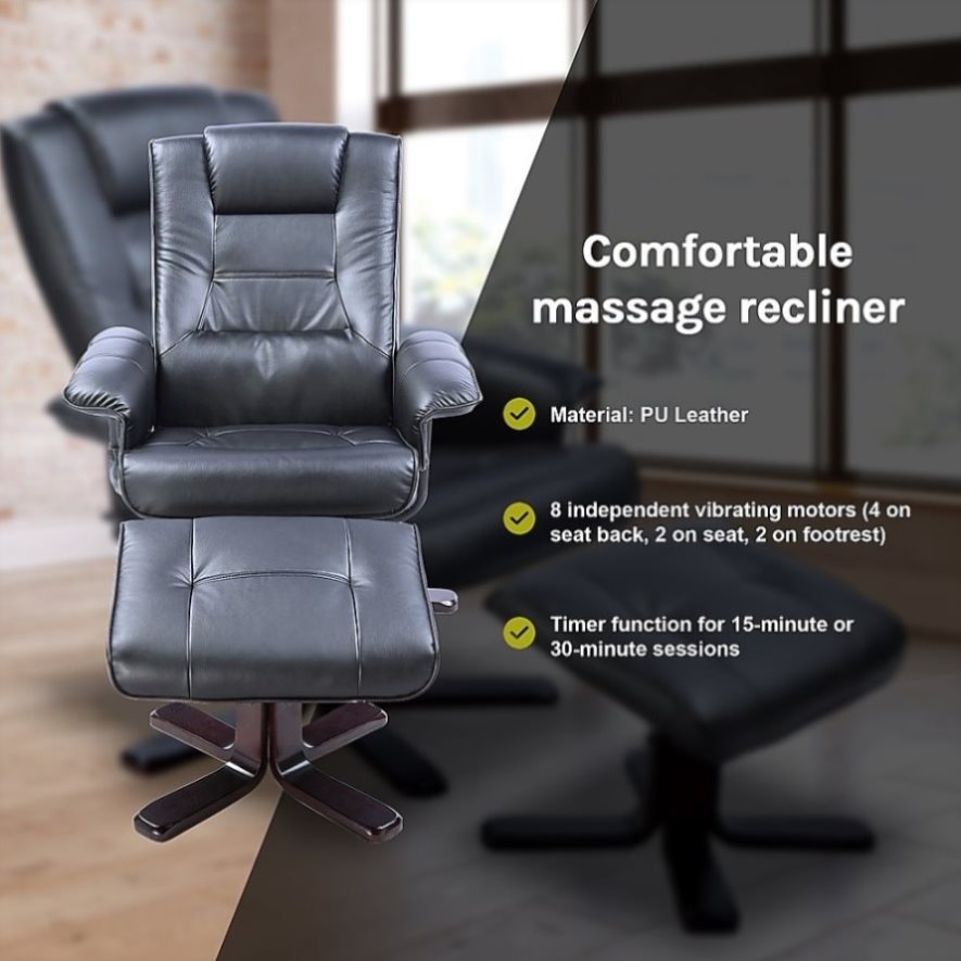 The massage recliner is made with comfortable PU Leather that's easy to clean. Classic black will go with any decór. The wooden base of both the recliner and the footrest are equally attractive and modern in a curved cappuccino-coloured wood.