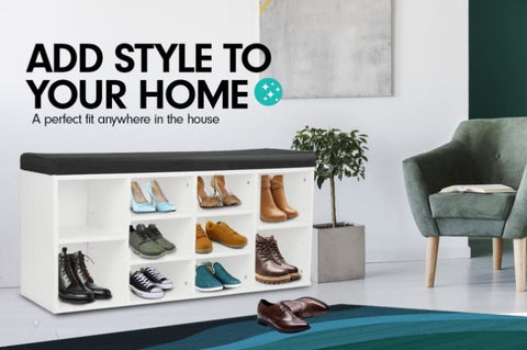 Eliminate the appearance of clutter and create a neat, organized space with this shoe cabinet with padded bench.