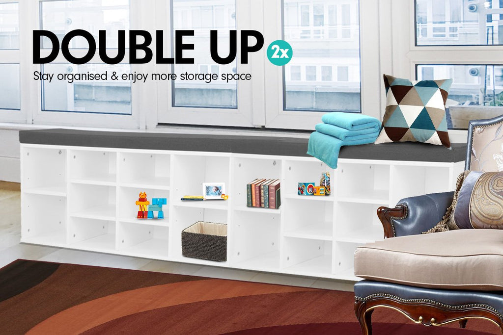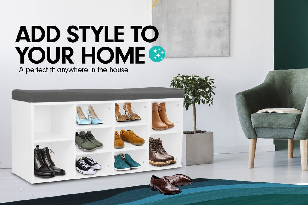Shoe Rack Cabinet Organiser Grey Cushion - 104 x 30 x 45 - White CBT-104-30-48-WHGY