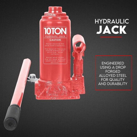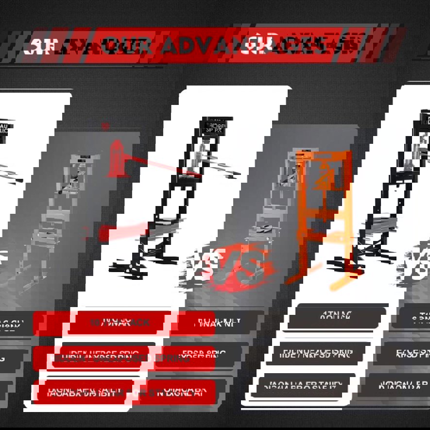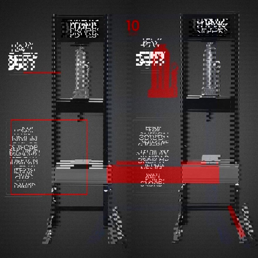 The FIERNERO heavy-duty steel H-frame hydraulic garage/shop floor press is designed for straightening, bending, pressing bearings, installing bearings and stamping. The hydraulic cylinder is equipped with a 10-ton capacity bottle jack.