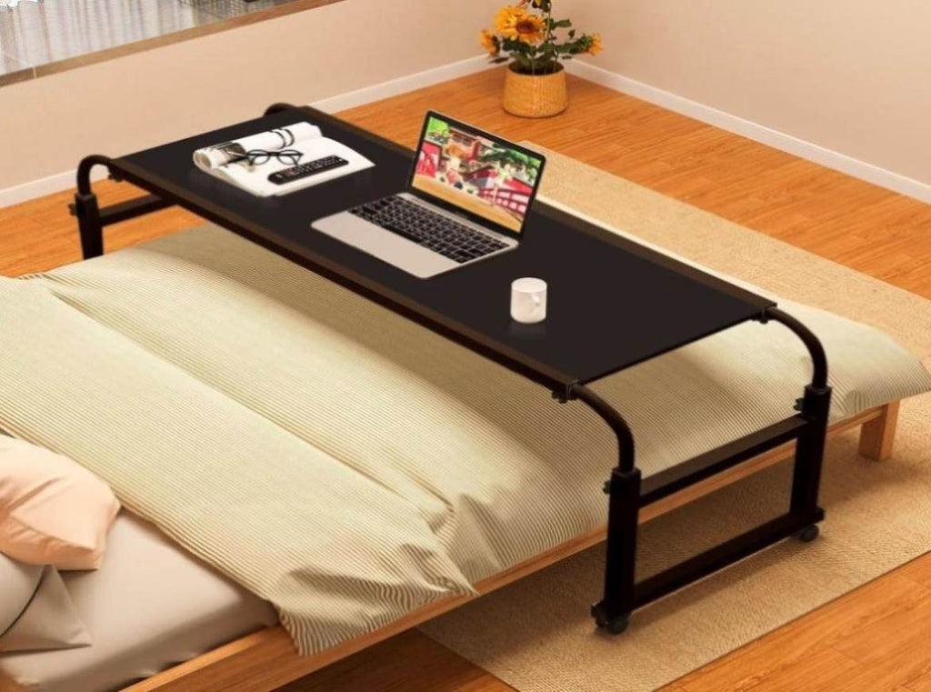 Enhance your bedroom or home office setup with a versatile Black Cross Bed Movable Desk Table, designed for adjustable comfort and practicality.