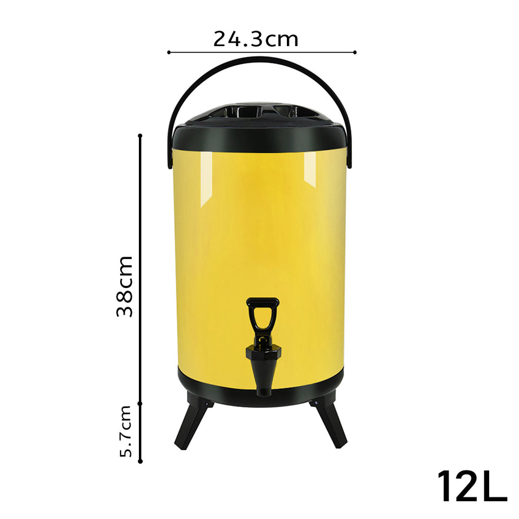 SOGA 12L Stainless Steel Insulated Milk Tea Barrel Hot and Cold Beverage Dispenser Container with VICDISPENSER12LYEL