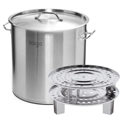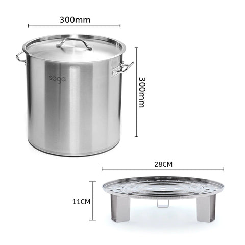 SOGA 21L Stainless Steel Stock Pot with Two Steamer Rack Insert Stockpot Tray STOCKPOT30CM-2XRACK28CM