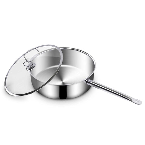 SOGA 28cm Stainless Steel Saucepan Sauce pan with Glass Lid and Helper Handle Triple Ply Base SAUCEPANSS423028CM