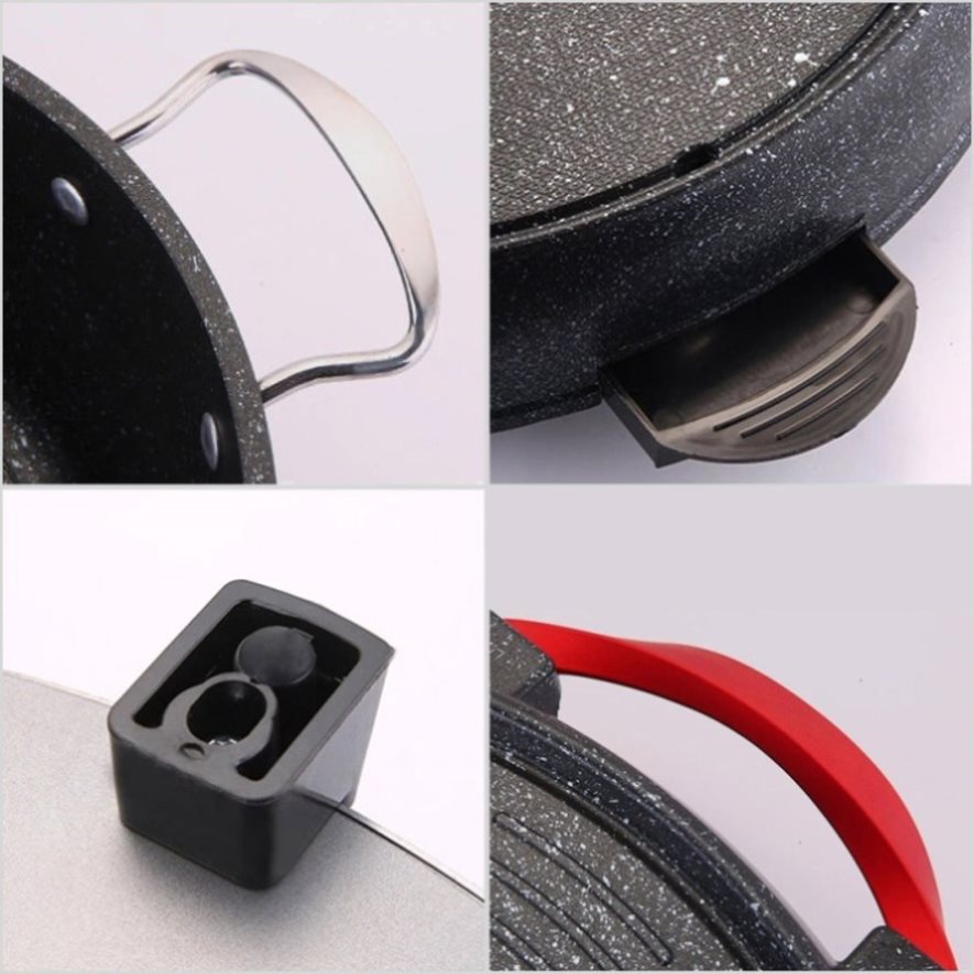 - Stone coated hot pot and Large, non-stick Teppanyaki Grill cooks a variety of meats, fish, vegetables and more to perfection