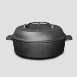 - Rugged cast iron has great heat distribution and retention for slow and even cooking