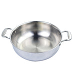 - 3-ply polished stainless-steel construction with a thick aluminum warp-resistant base for fast, even heating
