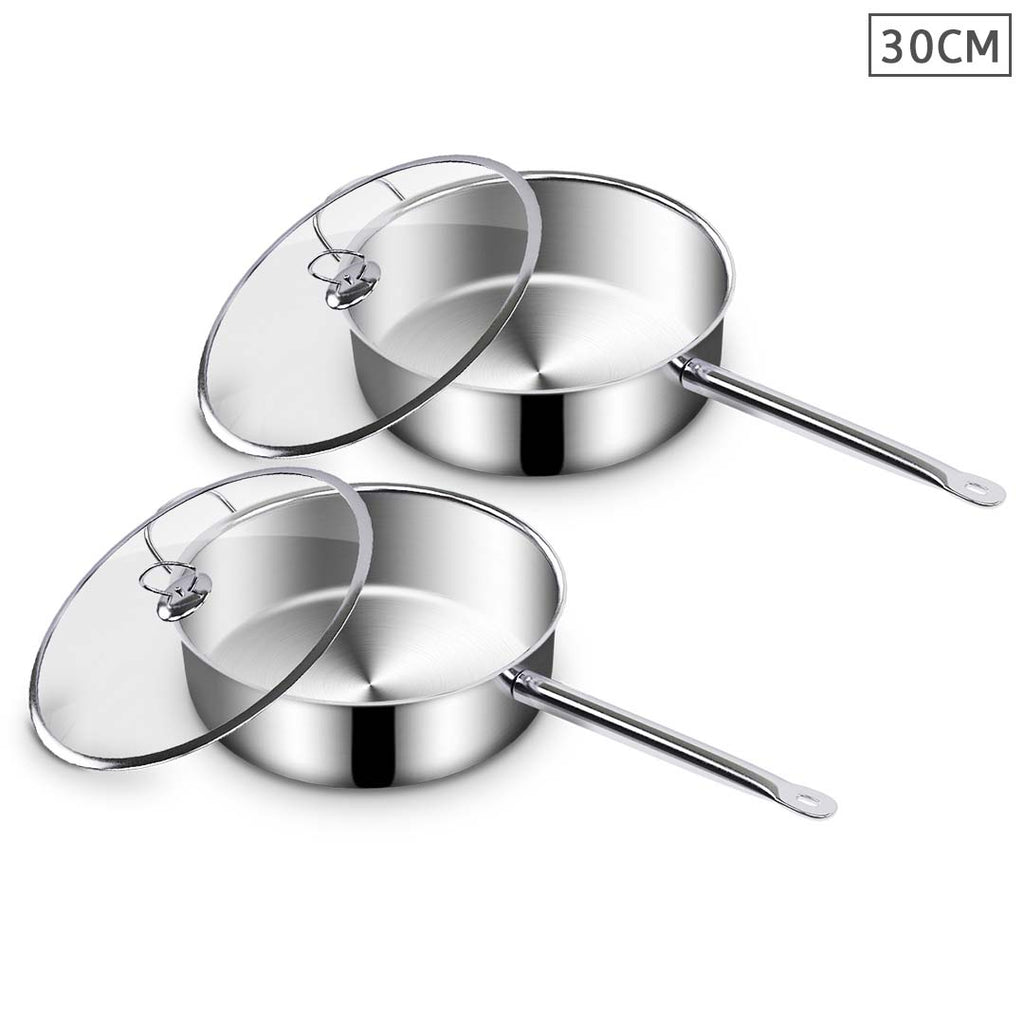 SOGA 2X 30cm Stainless Steel Saucepan Sauce pan with Glass Lid and Helper Handle Triple Ply Base SAUCEPANSS423130CMX2
