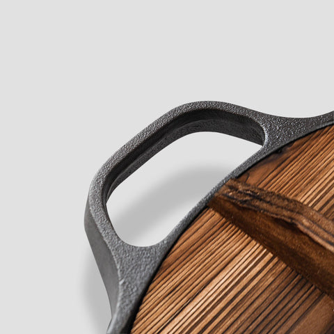 - Wooden lid to prevent splatter when boiling and cooking