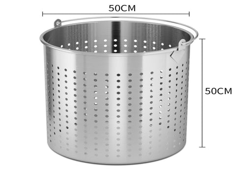 - Fits inside stock pots, with easy lift pail handle for convenient carrying