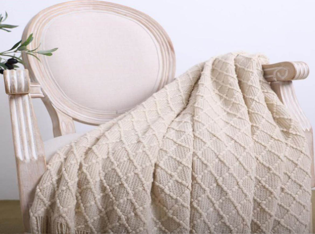 • 2X SOGA Beige Diamond Pattern Knitted Throw Blanket