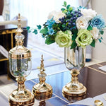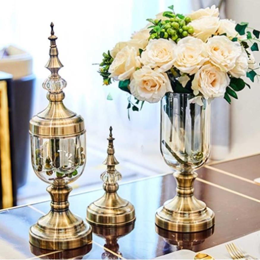 SOGA 2X Clear Glass Flower Vase with Lid and Blue Flower Filler Vase Bronze Set VASEGSETBRONZEWBLUEF
