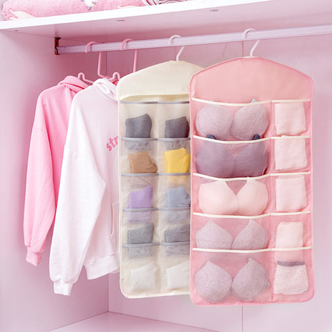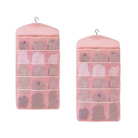 SOGA 2X Pink Double Sided Hanging Storage Bag Underwear Bra Socks Mesh Pocket Hanger Home Organiser SBOX26PNKX2