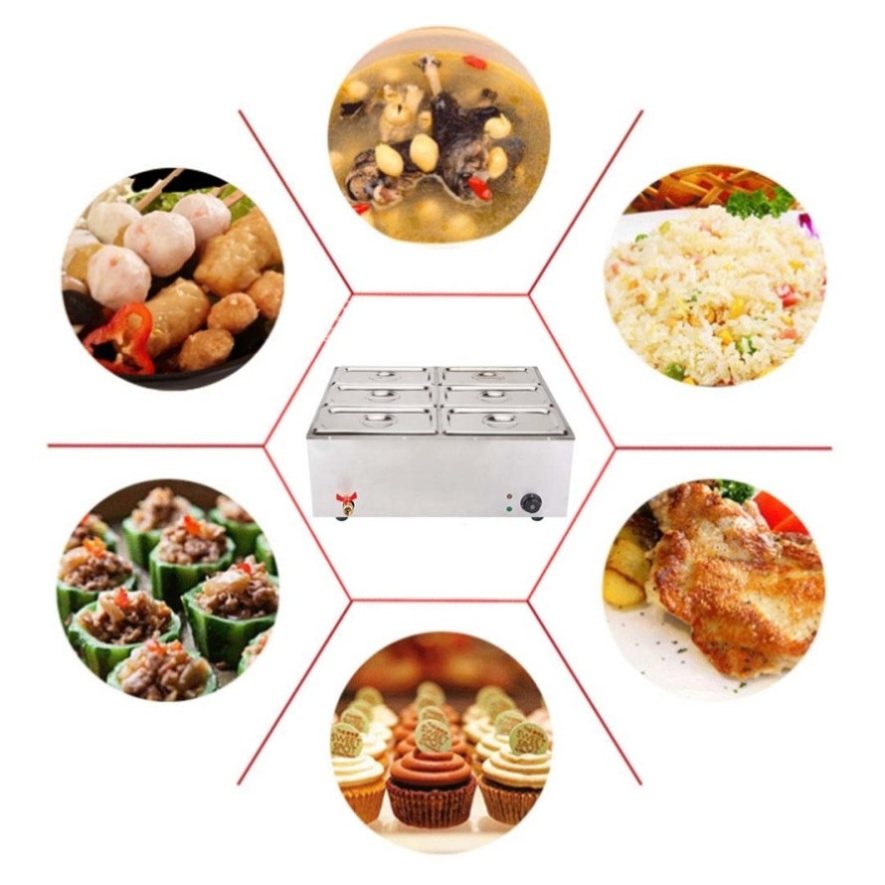 - INTERCHANGEABLE DESIGN: Standard Bain Marie base that works with 6'' deep standard size compartments of all sizes, interchangeable to suit all occasions.
