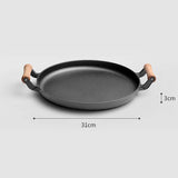 SOGA 31cm Cast Iron Frying Pan Skillet Steak Sizzle Fry Platter With Wooden Handle No Lid ZPAIB9