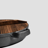 SOGA 33cm Round Cast Iron Pre-seasoned Deep Baking Pizza Frying Pan Skillet with Wooden Lid ZPAIC3
