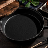 - SOGA Cast Iron Pre-seasoned Deep Pan is made out of cast iron material, durable, and long-lasting cooking ware.