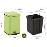 SOGA 4X 12L Foot Pedal Stainless Steel Rubbish Recycling Garbage Waste Trash Bin Square Green RUBBISHBINSQUARE12LGREENX4